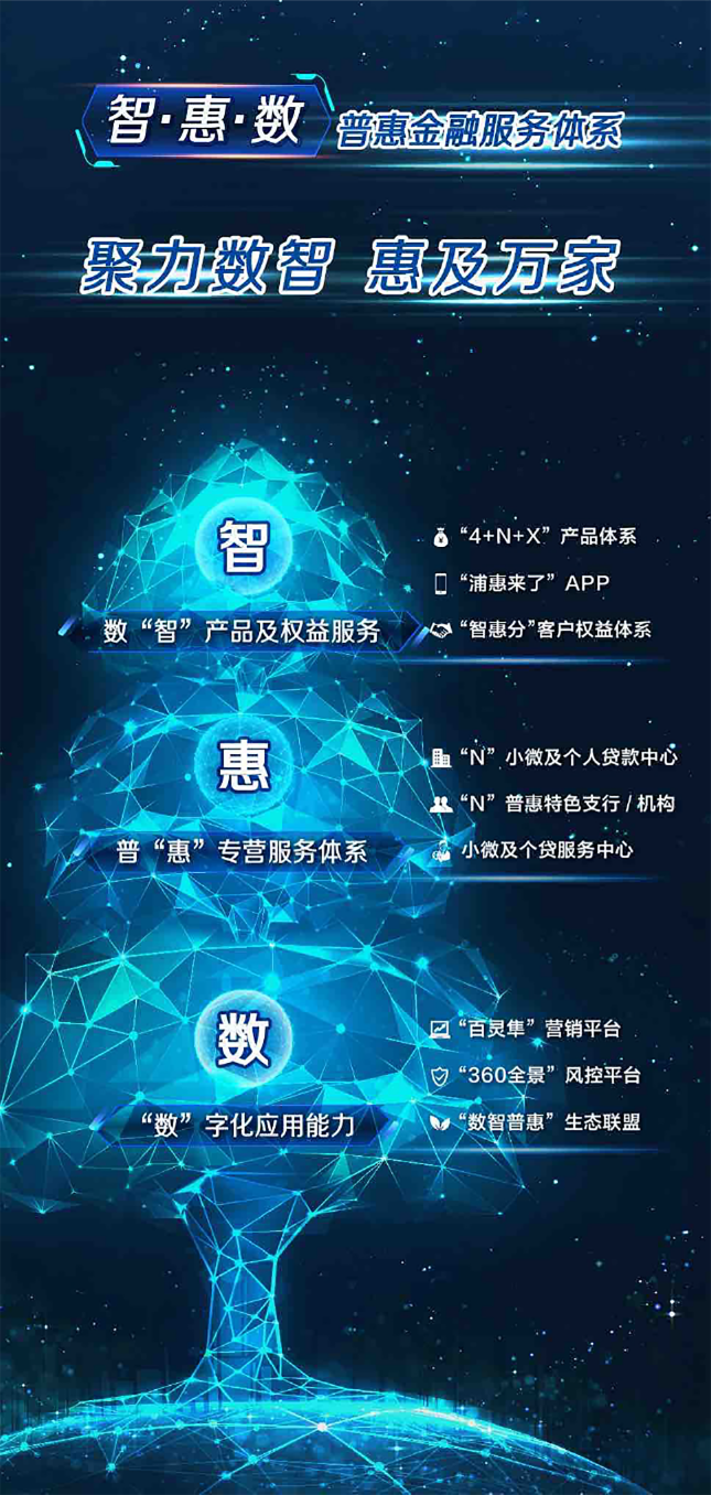 浦发银行数字普惠深耕优质普惠客群,围绕普惠客群全生命周期提供一揽子金融服务。通过建设“智.惠.数”普惠金融服务体系,打造集数字化应用能力底座、普惠特色经营机构、“4+N+X”普惠特色产品、小微客户综合服务生态为普惠小微企业、个体工商户、小微企业主提供一体化的普惠金融价值服务,覆盖金融及非金增值服务,持续培育普惠小微客户,成为超级价值链接者。